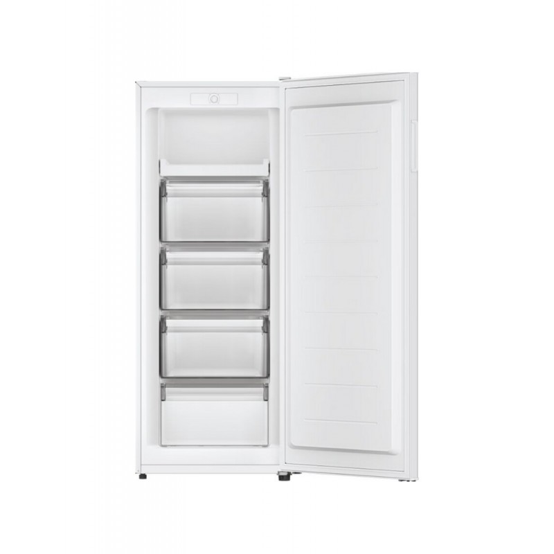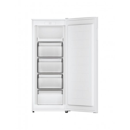 Der freistehende Gefrierschrank Candy CUQS513EW in weißer Ausführung misst 55x138 cm, hat ein Gesamtvolumen von 163 Litern und gehört zur Energieeffizienzklasse E.